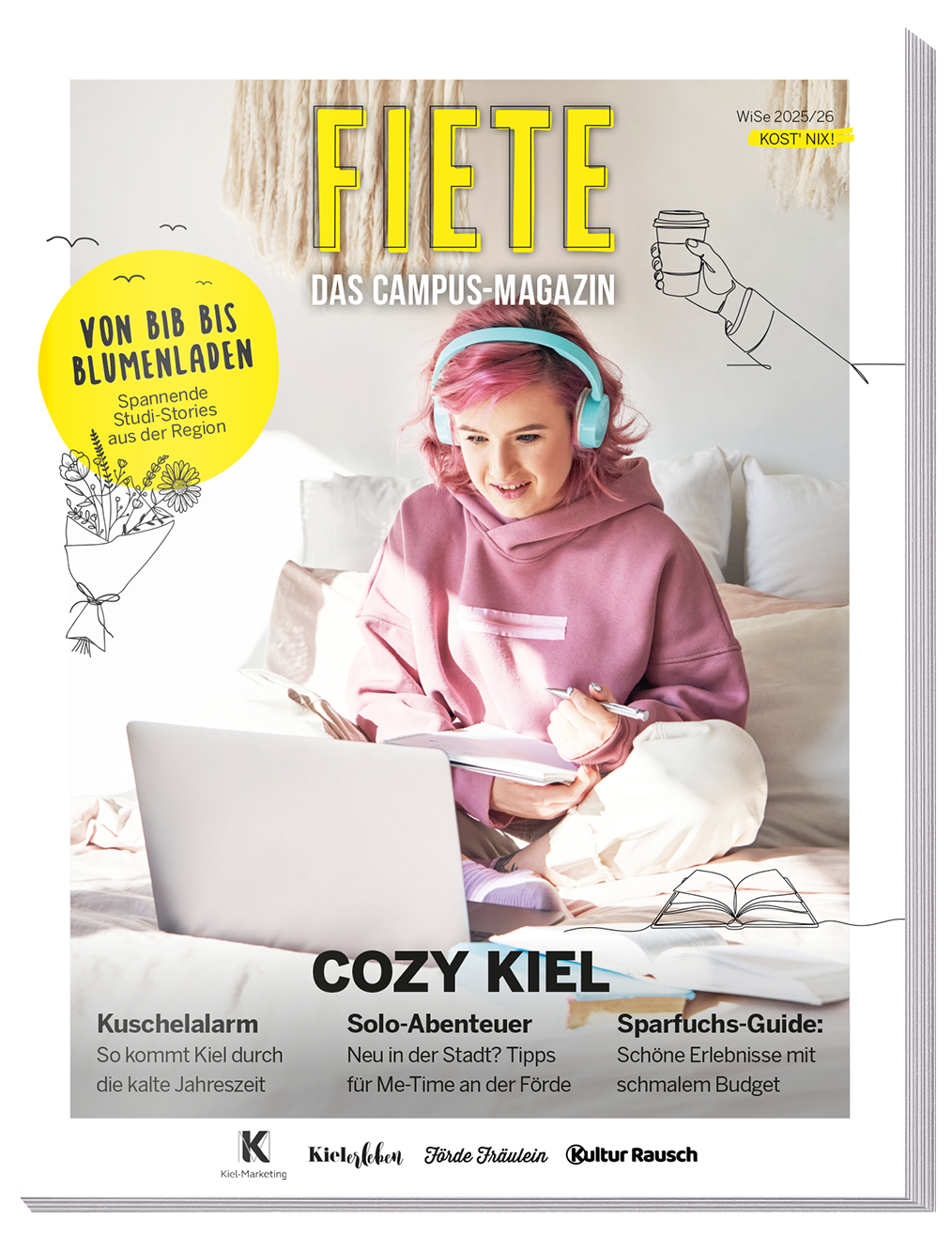 Kiel“. Denn wenn es draußen ungemütlich, dunkel und stürmisch wird, darf es drinnen umso behaglicher sein. Wir haben für euch gesammelt, was in der kalten Jahreszeit wirklich guttut: die Lieblingsrezepte der Redaktion, die sich unkompliziert nachkochen lassen (und auch mit kleinem Budget funktionieren), Ideen für Indoor-Aktivitäten in und um Kiel, Tipps für gemütliche Deko im Studi-Zimmer und Anregungen, wie ihr gut durch die stilleren Wintermonate kommt. Außerdem findet ihr eine Auswahl an Filmen und Serien, die perfekt zum Einkuscheln passen und euch entspannte Abende bescheren.
